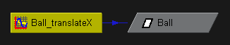 设置 NURBS 球体(名为 Ball)的 translateX 属性的关键帧。如果选择球的变换节点并显示所有输入和输出连接,则会显示该图表: