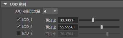 - 指定要创建的“LOD 级别的数量”(Number of LOD levels),并为列表中的每个级别启用复选框。