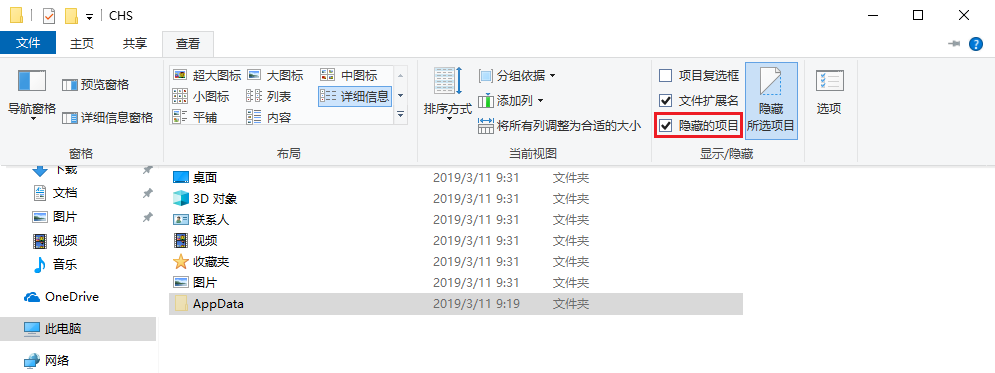 如果未显示 AppData 文件夹,则是因为 AppData 属于 Windows 默认隐藏的文件夹之一。
