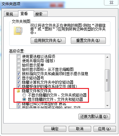 - 激活“显示隐藏的文件、文件夹和驱动器”选项。