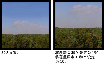 显示在图像平面上的图像文件的水平像素数和垂直像素数。“覆盖 X”(Coverage X)和“覆盖 Y”(Coverage Y)的默认值分别是图像文件的水平分辨率和垂直分辨率。您可以通过减小这些值来限制显示的图像文件部分。