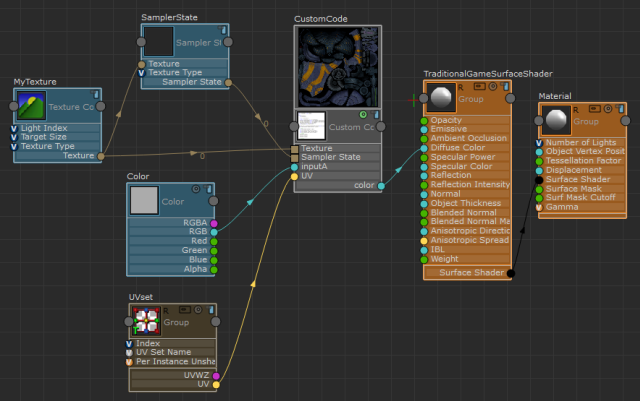 “自定义代码”(Custom Code)节点可以让您编写自定义函数,并将其添加到着色器。