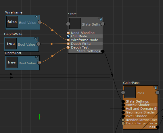 “状态设置”(State Settings)节点用作 ColorPass 节点的输入。