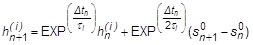 where the stress at each relaxation component is calculated by: