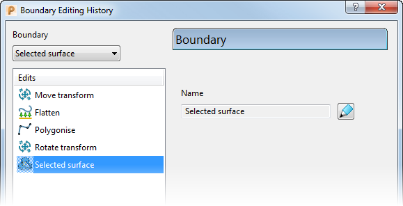 编辑 - 此窗格列出对边界执行的所有编辑。最近的编辑位于列表顶部,而原始边界位于列表底部。对话框右侧显示已选编辑的相关信息。