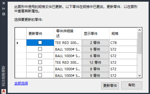更新选定的零件标注。