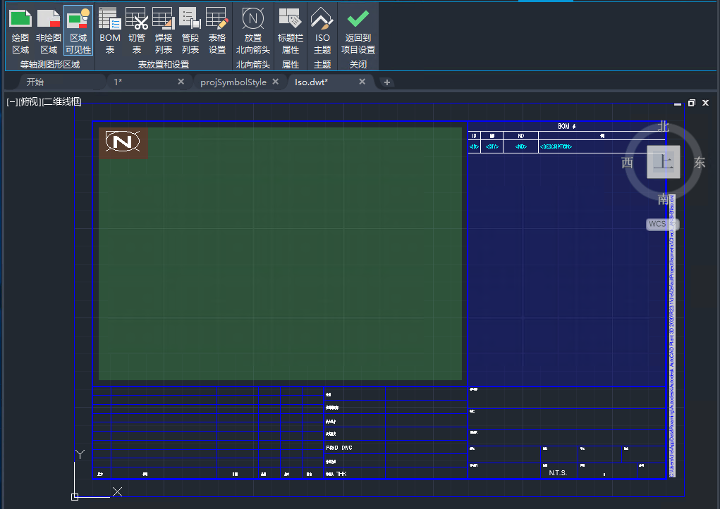 - 要精确地看到哪个区域将包含 ISO 图形 - 在功能区中,单击“区域可见性”。显示定义等轴测图形区域的点线。