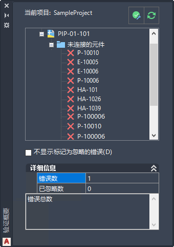 3. 注: 可以通过更改“验证概要”窗口中的设置来隐藏标记为忽略的错误。