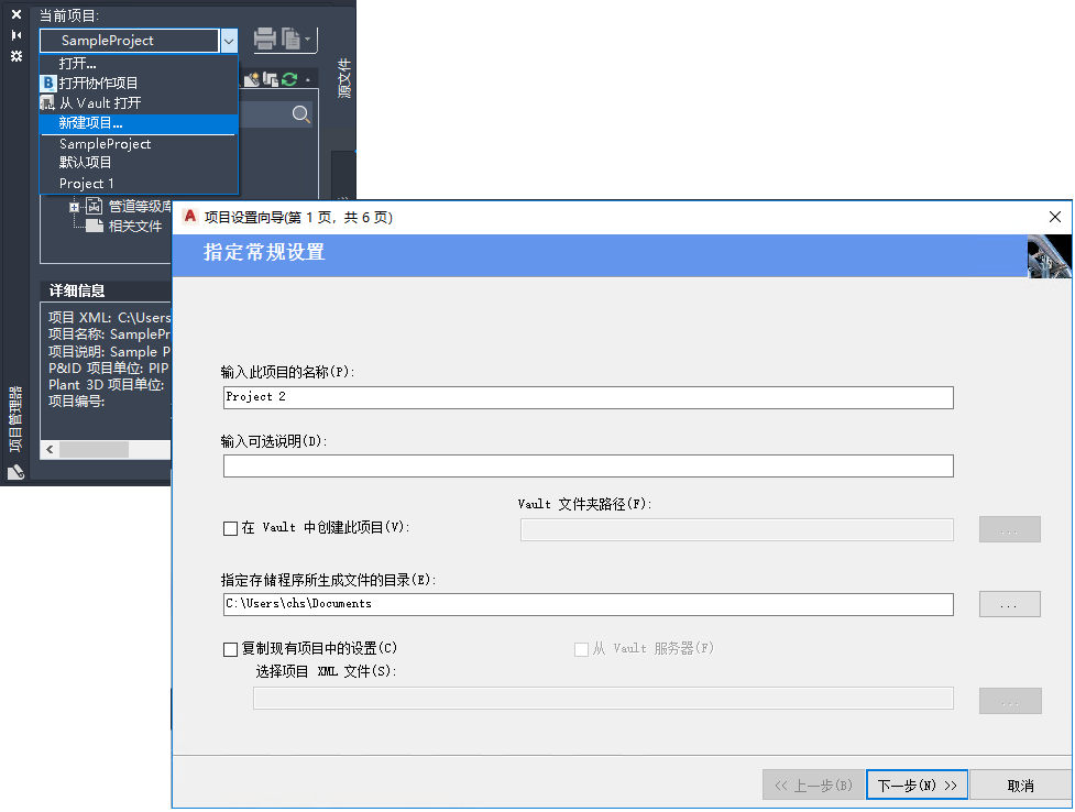 第一次启动程序时,程序会将默认项目设置为当前项目。根据具体的要求,您可以修改该项目,或者创建新项目。