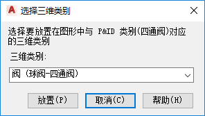 - 如果将 P&ID 对象类别映射到多个 Plant 3D 类别,请在“选择 Plant 3D 类别”对话框的“三维类别”列表中,单击一个 Plant 3D 类别。单击“放置”。