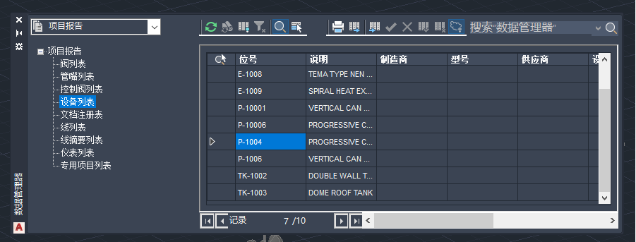 显示项目中的设备数据的报告。