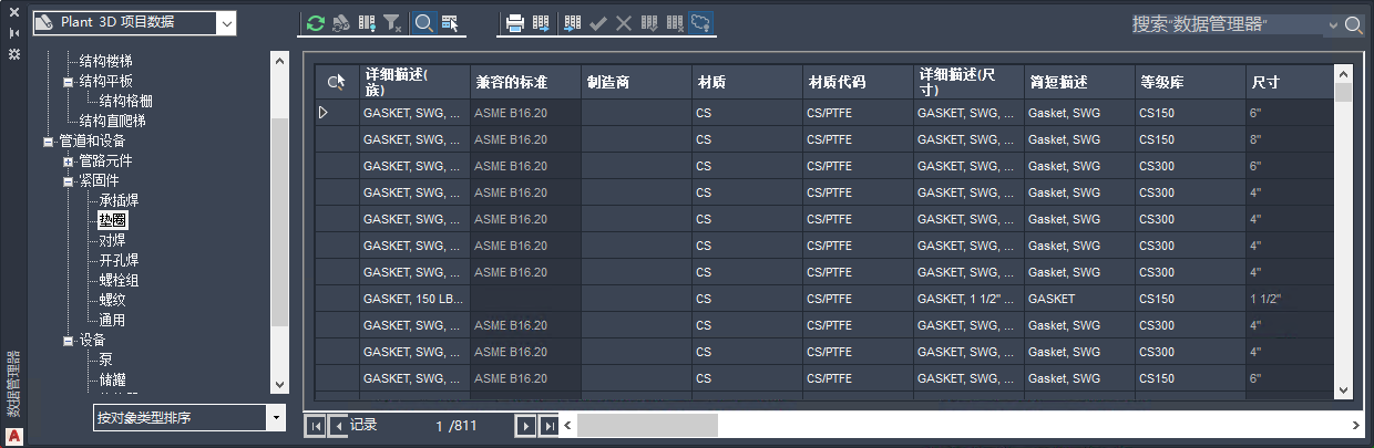 数据管理器将向 Plant 数据提供一个窗口。可以使用数据管理器查看、修改、输出和输入图形及项目数据,以及生成报告。