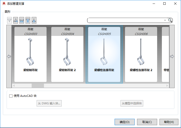 功能区: “常用”选项卡 “管道支撑”面板 “创建”