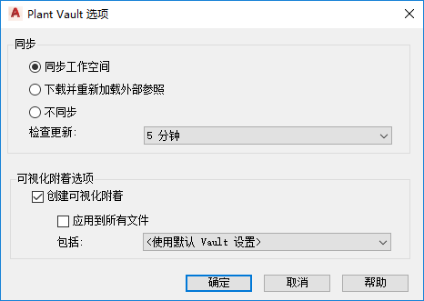 有关 Autodesk Vault 联机帮助,请参阅“配置可视化附着”选项。