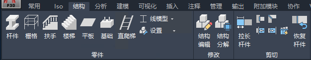 “结构”选项卡显示用于处理结构的选项。此选项卡包括以下面板: