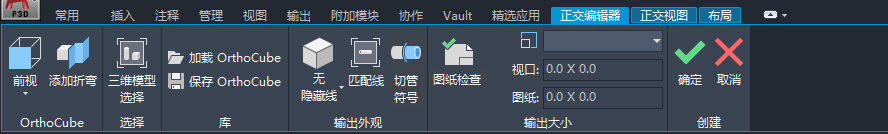 “正交视图”选项卡显示用于处理正交图形的选项。此选项卡包括以下面板: