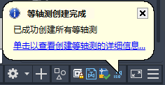 - 通过单击该气泡消息,可显示等轴测创建结果并打开等轴测图形。
