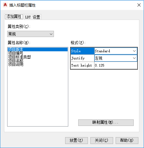 “LDT 设置”选项卡(“插入标题栏属性”对话框)
