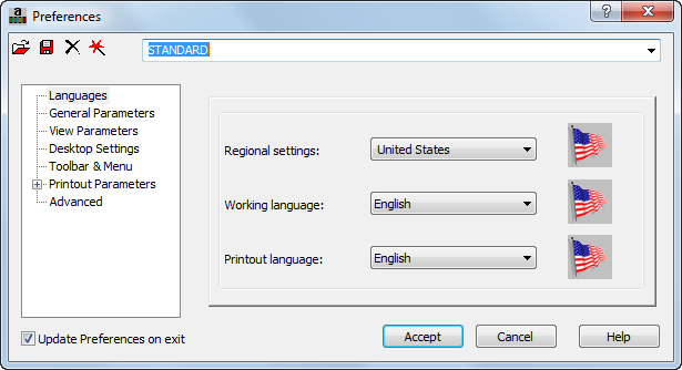Note: The Regional settings set the default databases (for profiles, and materials), as well as the units and national codes to the standards of a country.