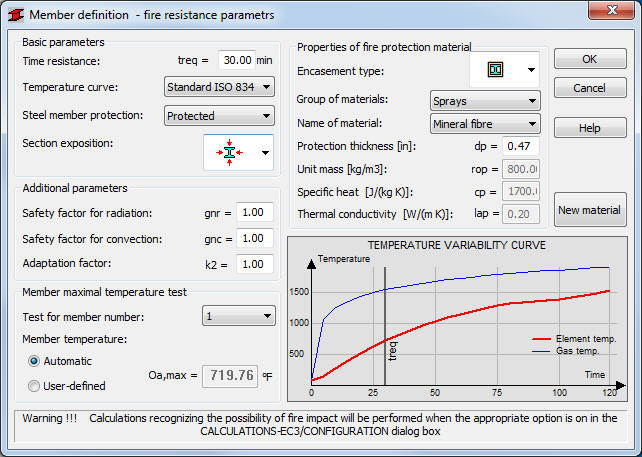The scope of the code includes calculations of steel members loaded with an arbitrary set of internal forces (N,Vy,Vz,Mx,My,Mz). As the documents recommend, calculations are performed using one of the following methods: resistance domain, temperature/time domain or time domain.