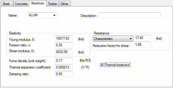 Select Materials in the Job Preferences dialog and click the Modification button. Select the Aluminum tab to access the following parameters.