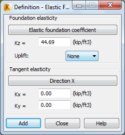 In the Definition - Elastic Foundation dialog, you can define a value of the KZ coefficient (elastic support coefficient):