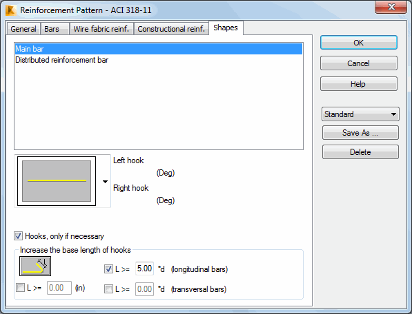 Additionally, you can define the hook length directly (by defining the length value) or by correlating the hook length with bar diameter.