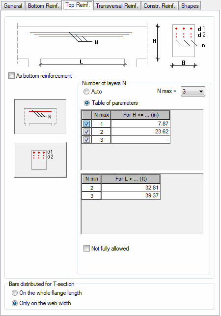 In addition, you can define the reinforcement distribution for T-shaped cross-sections (along the flange width or web width).