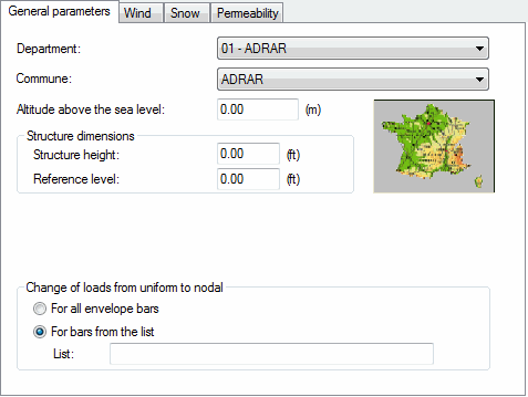 Opening the Snow/Wind Load dialog and clicking the General parameters displays the following dialog.