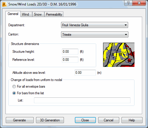 Opening the Snow/Wind Load dialog and clicking the General tab displays the following dialog.