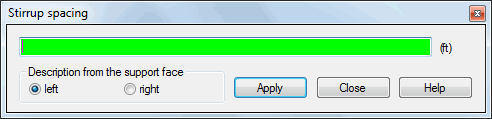 The option is used for manual modification of the spacing of stirrups (in beam transversal reinforcement). It is available after selecting the Reinforcement / Stirrup Spacing command from the menu.