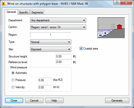 - Basic wind velocity - Determines the basic value for wind velocity, which depends on the structure's geographical position.