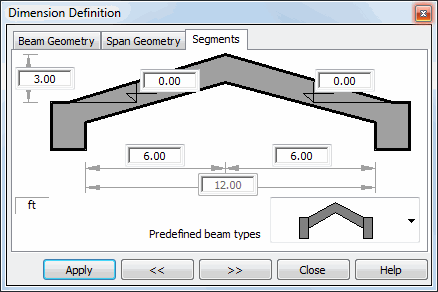 Options in the above dialog box are used to define selected shapes of a beam or to divide a beam into segments.