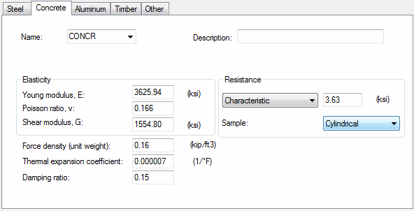 - Damping Ratio - the damping ratio for the defined concrete.