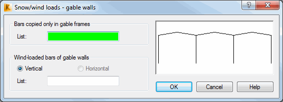 - In the Wind-loaded bars of gable walls field - Specify which bars of the gable walls (vertical or horizontal) are to be loaded with the wind along the Y axis.