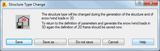 - Do not save - Snow/wind loads in 3D are generated without saving the state of the structure project after the snow/wind loads are generated for 2D.