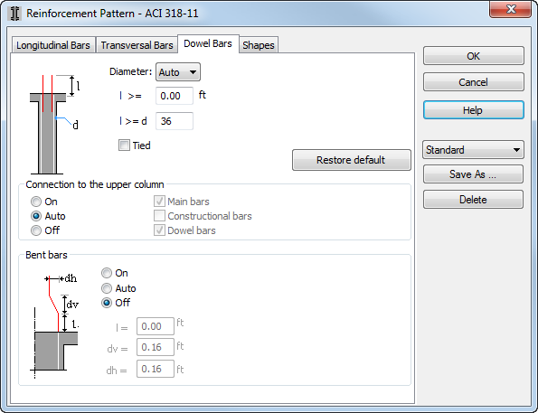 Additionally, it is possible to select which bars should be extended (main, constructional) and to decide if additional dowel bars should be used.