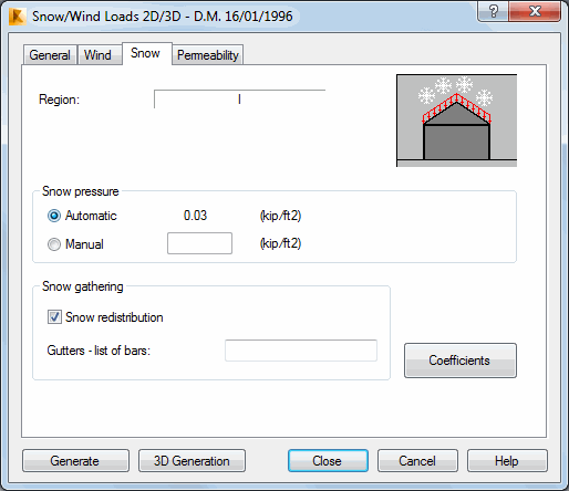 Opening the Snow/Wind Load dialog and clicking the Snow tab displays the following dialog.