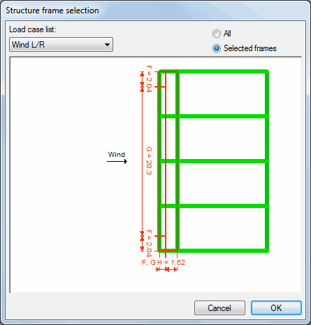 - For all the frames of a defined structure (All is selected). Wind loads are generated on all structure frames depending on the site where the individual frames are located.