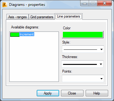 The following dialog is displayed after the Line parameters tab is selected in the Diagrams - properties dialog.