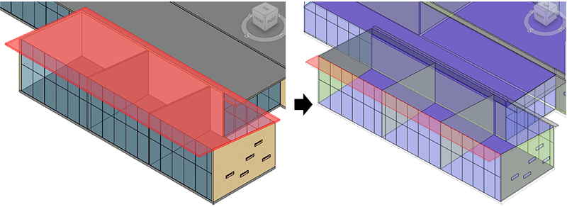 但是,当建筑图元的轮廓被编辑后,这些表面仍然是打开而非闭合的,且分析空间创建的行为会有所不同。