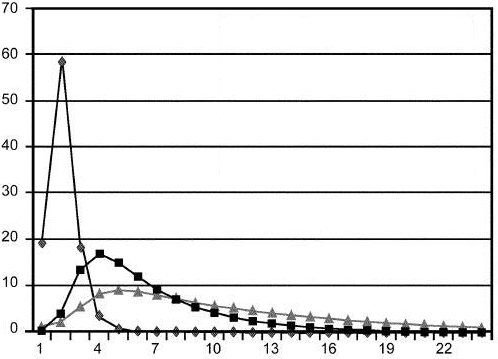 来自外表面的热增量受通过它们的传导性传热速率影响。为了确定此速率,引擎使用传导时间系列 (CTS) 值。每一个外墙和屋顶都具有 24 个不同的 CTS 百分比值,合计为 100%,指明在给定时间量之后外围中存储的多少热量已通过。