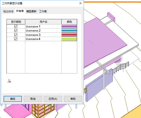 注: 指定给所有者的颜色会一直保留,直到该用户被删除为止。 默认情况下,系统会列出所有修改过中心模型的所有者。