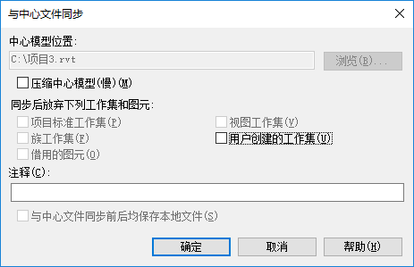 (同步并修改设置)。 此时将显示“与中心文件同步”对话框。