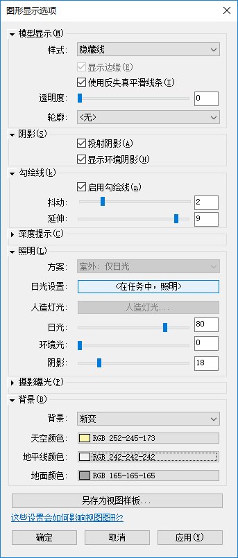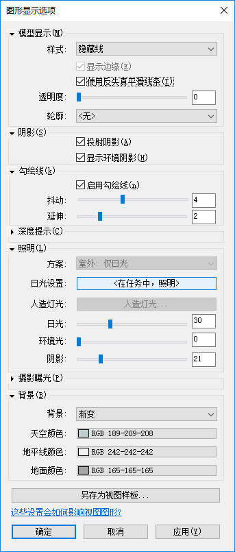 该视图使用以下位于“图形显示选项”对话框上的设置: