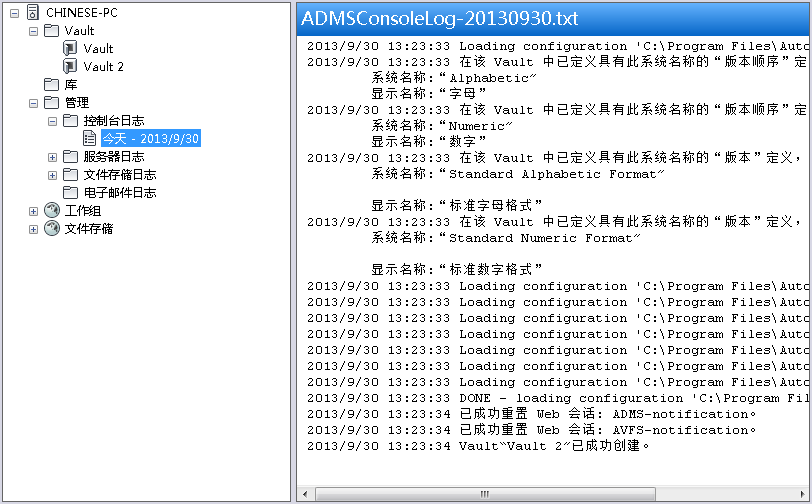 在 ADMS Console 中查看控制台、服务器、文件存储和电子邮件日志。