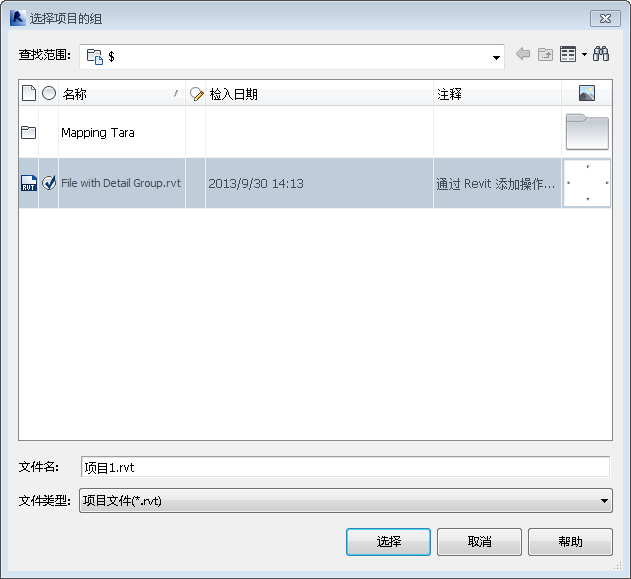 - 选择 .rvt 文件,然后单击“选择”可以查看可用的组。