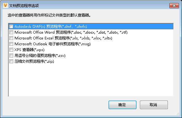 - “文档预览程序选项”对话框中列出了安装在您当前系统上的应用程序的列表。您可以在此处启用特定应用程序,以便在“预览”窗格中预览文档。