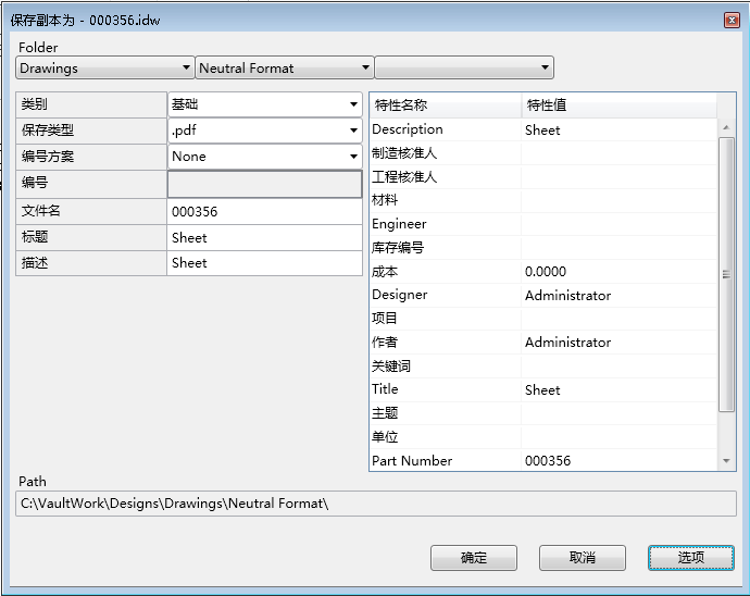 使用“保存副本为”可通过其他格式(例如 DWG、STP、PDF 或 DXF)复制零件、部件、工程图或表达视图。