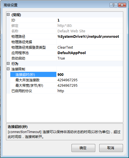 检查 IIS 连接超时是否未被禁止。
